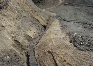多くの所で布は引き裂かれるか、土壌により地面へ押し潰されている。強雨の場合には、泥土は川へ流入し始める。