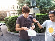 ![]() 大隈銅像の背後から 様子を眺める恐竜 |