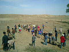 ダチンノール村で緑化活動。村民との共同作業。ものすごい砂嵐。