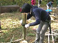 11月2回目の活動は炭材準備。前回と前々回に伐ったエゴノキと竹で、炭をつくる計画です。ドラム缶炭窯に隙間なく詰めるため、エゴノキはまっすぐな部分を伐り集め、竹は長さを揃えて割って節をとります。