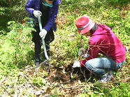 第2回は、もっとたくさん収穫できました。「あった!」という声があちこちで聞こえてきました。大きく伸びたものも倒しておきました。まだ柔らかく、足で倒せるぐらい。午前のみの活動でしたが、たくさん間引くことができました。