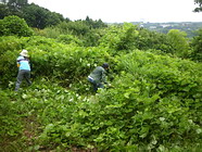 つい1ヶ月前は草原のようにさわやかだった里山の景色が一変。背丈よりも大きく育ったクズやブタクサに、視界が遮られます。