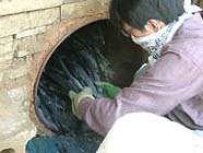 ドラム缶いっぱいに竹を詰めたら焚き口で火を焚き、中の温度を上げていきます。中の温度が275度まで上がると、自然に炭化が始まるので、火を焚くのをやめ、焚き口を小さな通気の穴にします。火をつけてから10〜12時間で炭化が終了。煙の色が変わるのを合図に通気口と煙突をふさいで火を止めます。