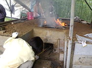 炭焼きは火をつけるまでが忙しく、いろんな作業があります。炭焼きは初めてという人が半分以上でしたが、ベテランの指揮のもと、粘土づくりや焚きつけ用の材料準備など、みんなで分担して順調に進みました。火をつけたらひと段落。ゆっくり窯の温度を上げていきます。