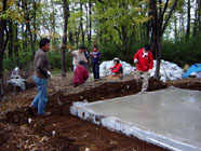 基礎のコンクリートブロック周りの土を埋め戻す。