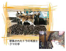 世界中で動物の密猟取り引きを調査するトラフィックという団体が極東ロシアで行った調査では、トラの毛皮や漢方薬になる骨が、2007年の1年間で4回ほど見つかっています。